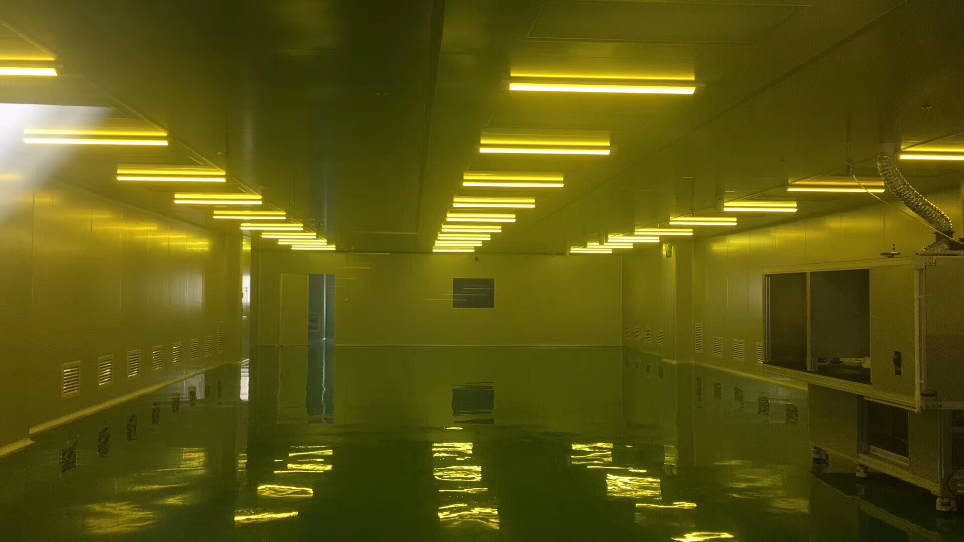 3、無塵車間的門只有風淋門,不設置普通門,完全充當進門通道,進入風淋室除去人體各部位大于0.3微米粉塵顆粒,以免進入潔凈房后帶去污染。同時也起到氣流緩沖作用,因為在開門的過程中,附帶有空氣的流動,風淋室很好的把氣流流動停于風淋室內部,很好的避免了空氣流動所帶來的空氣污染。