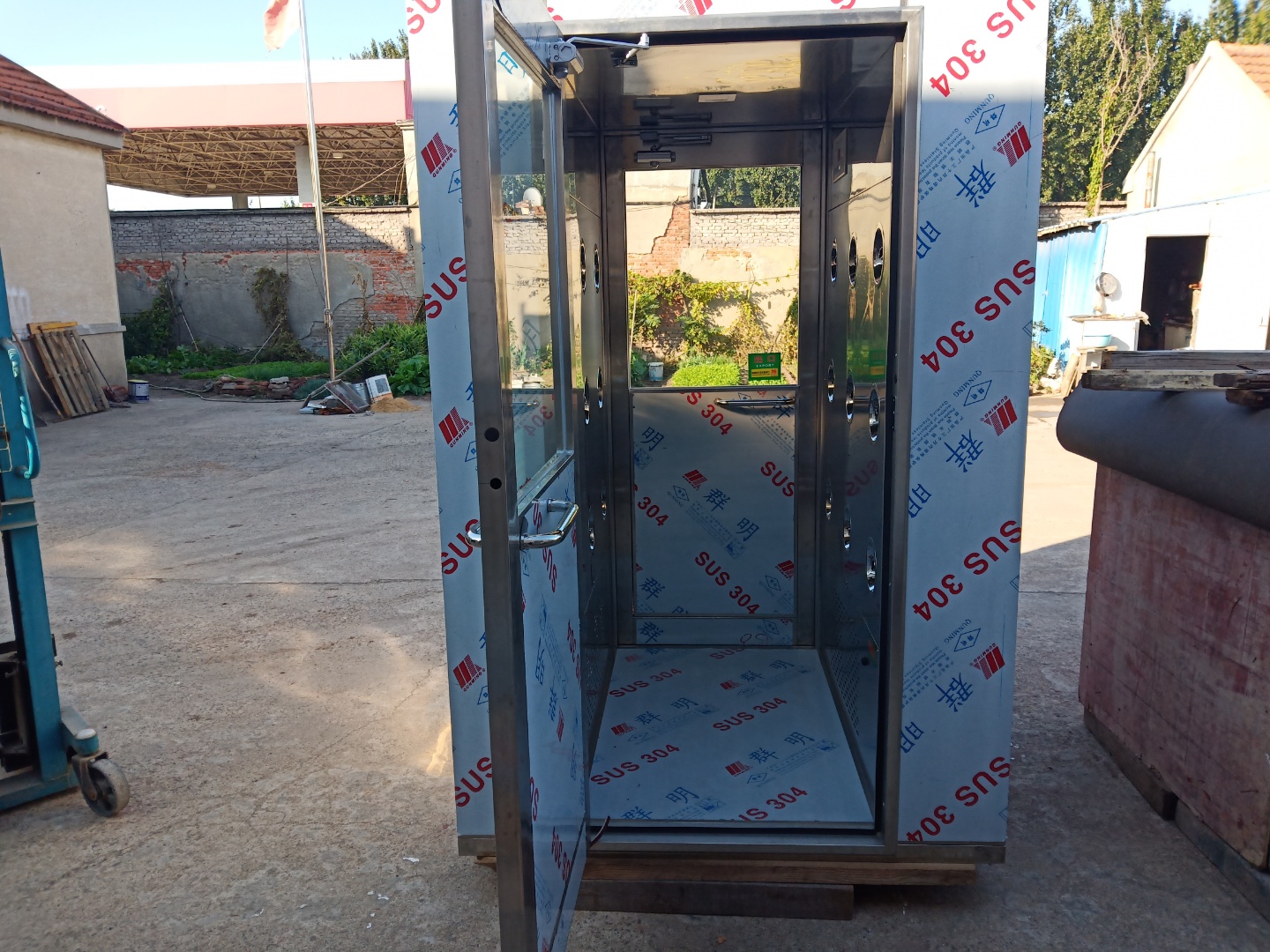 風淋室是操作人員進入潔凈室時使用的人身凈化裝置。它利用高速潔凈氣流吹淋除掉進入室內人員身上的污物。其噴嘴可調節,以便有效除去人身上的灰塵,并阻止外界污染進入潔凈區域。它也可應用于大件貨物的吹淋。風淋室是潔凈廚房和裝配式潔凈室的潔凈設備,用于吹除進入凈化廠房的人體和攜帶物品表面的塵埃,同時風淋室又起到氣閘緩沖的作用,防止未經凈化的空氣進入潔凈區域,是進行人體凈化和阻止外空氣污染潔凈區的有效設備。