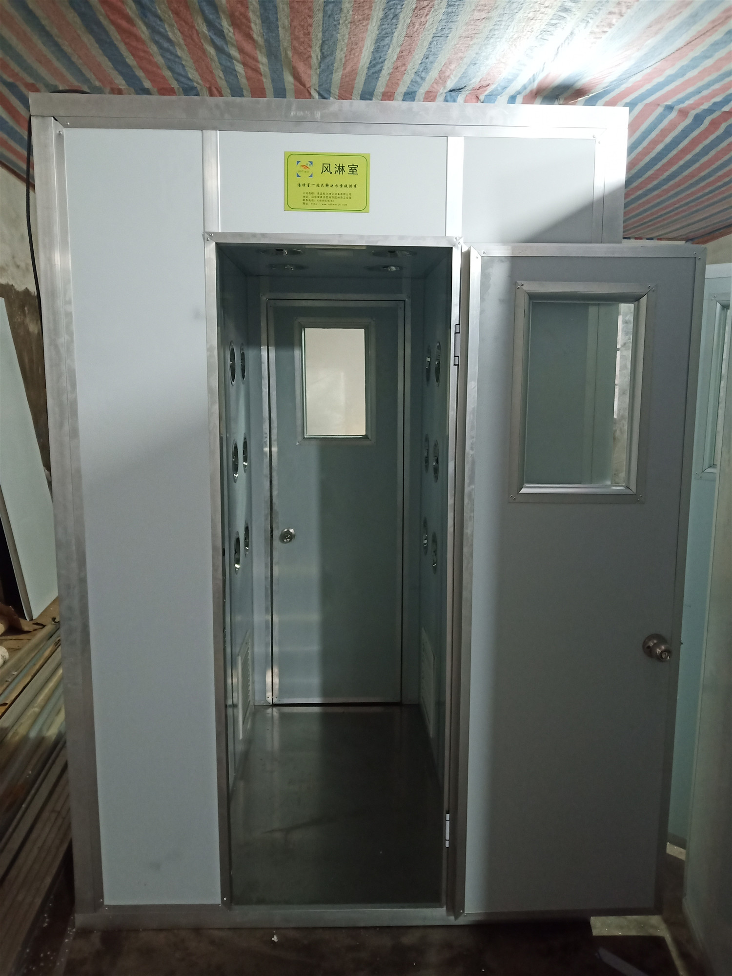 風淋室作用:風淋室是人進入潔凈室所必要的通道,它可以減少人進出潔凈室所帶來的污染問題,可以兼氣閘室的作用,防止未被凈化的空氣進入潔凈室,降低人員出入潔凈室過程中塵埃對潔凈室的二次污染。當人員進入風淋室后,高速潔凈氣流經高效過濾器過濾后從可旋轉噴嘴從各個方向噴射至人身上,能有效清除工作人員身上所攜帶的塵埃粒子。