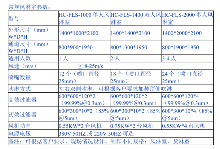 普洱風淋室價格:潔凈風淋室規格尺寸及配置特點: