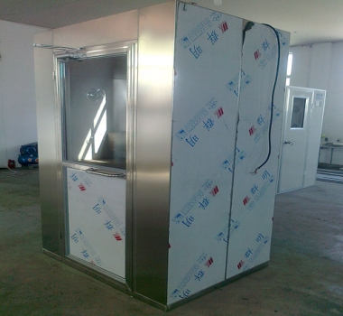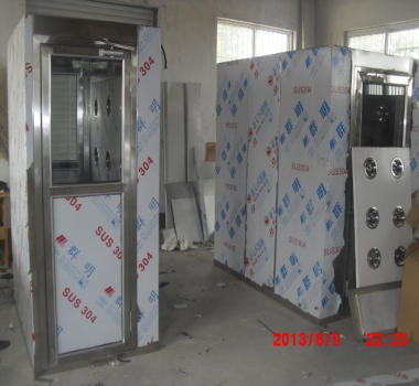 風淋室是用于醫藥、衛生、生熟食品加工、精密儀器、儀表、航空、航天等行業的凈化設備,主要用途是在操作者進入車間前,用潔凈空氣吹淋,將其衣服表面附著的灰塵、掉發、發梢等雜質除掉,通過過濾器清除,以防操作者將身上的雜質所帶的細菌帶入車間,有利于達到衛生標準,以提高產品質量。