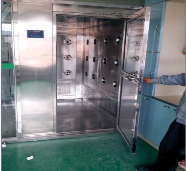 風淋室,從非潔凈區進入,關門后紅外線感應有人就吹淋,吹淋時雙門自動鎖閉,吹淋后入